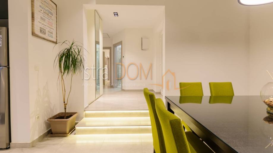 - ulaznog hodnika, dnevnog boravka, kuhinje, blagovaone, tri spavaće sobe te tri kupatila, natkrivena terasa. Sva kupatila imaju podno grijanje, dok su u svim prostorijama postavljeni klima uređaji koji služe za grijanje i hlađenje.