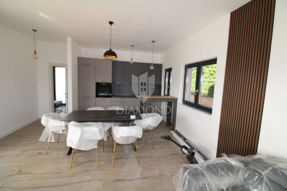 Kuća se prodaje apsolutno završena i namještena tako da novi vlasnici imaju jedini brigu koji privjesak staviti na ključ. Upotrijebljeni su najkvalitetniji materijalni i prilikom izrade i prilikom završnih radova. Ograda i uređenje okoliša se očekuje unutar mjesec dana. Osim toga, u cijeni je i djelomično ograđena okućnica te bazen u prvoj fazi dovršenosti (betonirano, izolirano i s postavljenim instalacijama), kao i instalacije za punionicu za električne automobile te priprema za video nadzor.