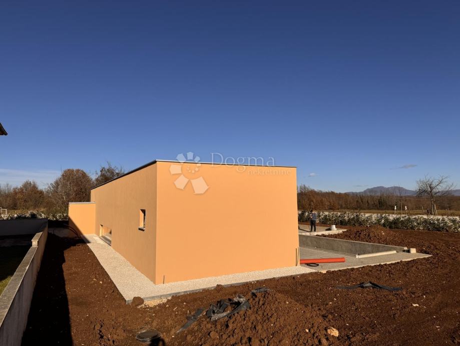 U mirnom mjestu blizu Žminja smjestila se ova prekrasna moderna prizemnica u izgradnji, L-oblika sa optimalnom orijentacijom.