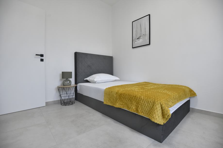 Sastoji se od 3 spavaće sobe, prostrani dnevni boravak s kuhinjom ( open space koncept ), dvije moderno uređene kupaonice te ostavom.