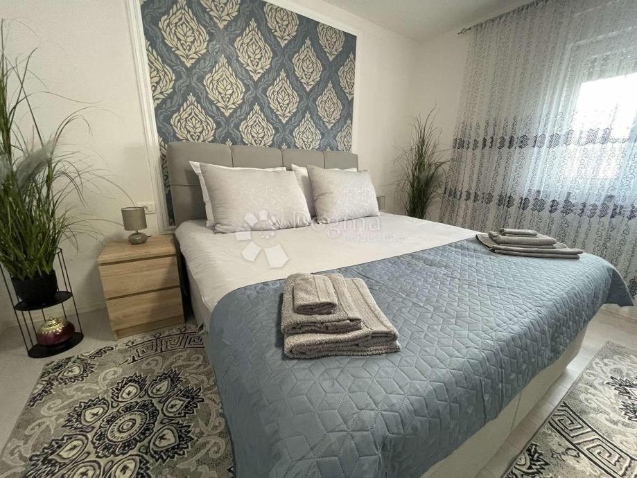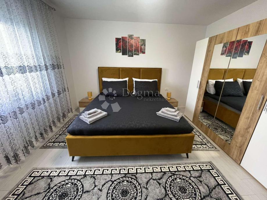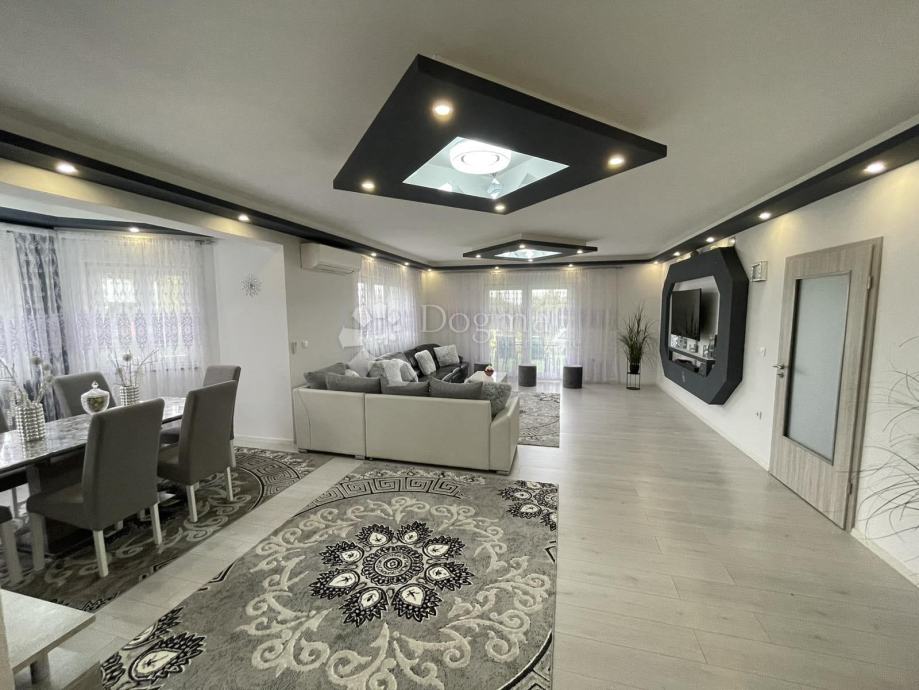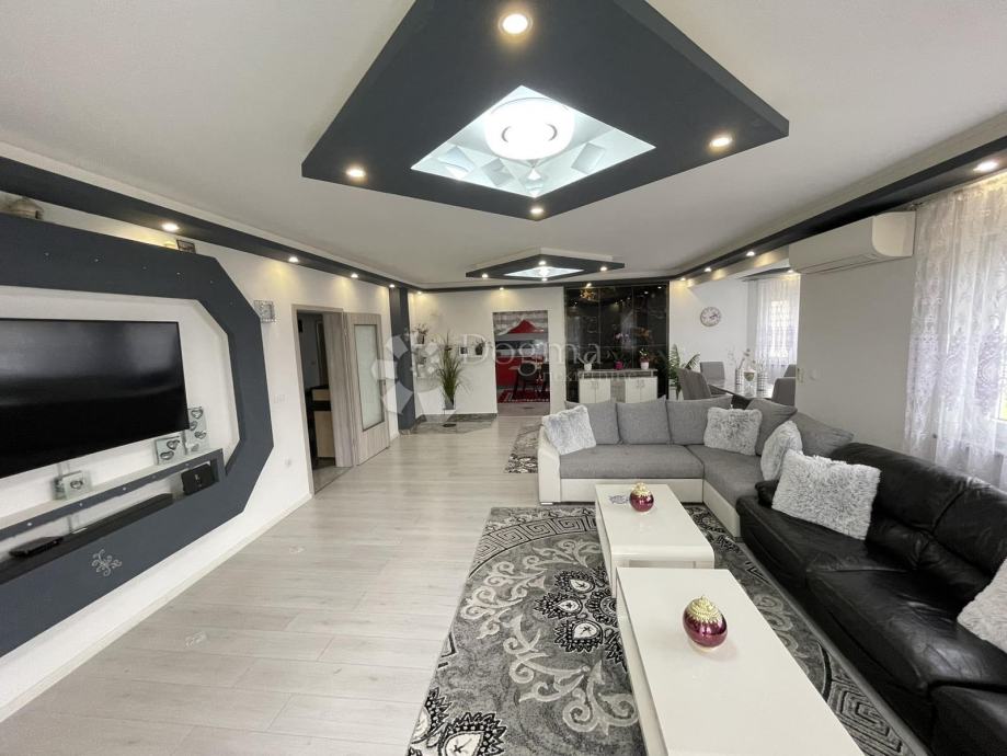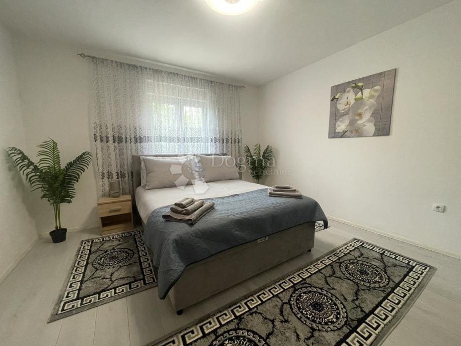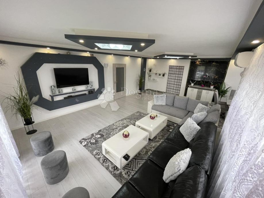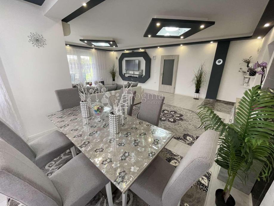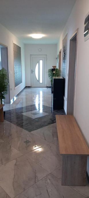 Raspored u kući je praktičan i funkcionalan: ulazi se u prostrani hodnik iz kojeg se lijevo nalaze tri prostrane spavaće sobe, svaka površine 16 m². Naprijed se nalazi prostrana kupaonica, dok se s desne strane smještaju moderna kuhinja i dnevni boravak s blagovaonicom. Kuća je prostrana, moderno i unikatno uređena, a opremljena je komarnicima na svim prozorima, PVC stolarijom, peći na drva i klimom.