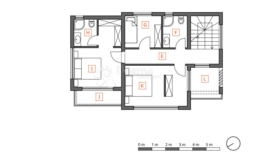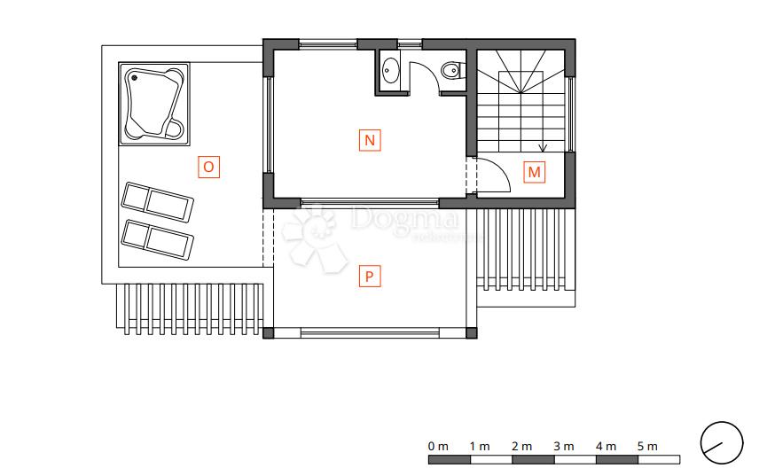 Na drugom katu kuće nalazi se dodatna prostorija predviđena za teretanu, WC te dvije prostrane terase - jedna natkrivena i jedna nenatkrivena. U podrumu je ostava.