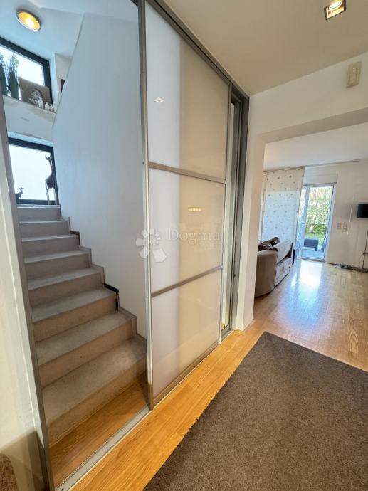 Kuća se sastoji od tri etaže. Prizemlje površine 83,16 m2 uključuje ulazni hodnik, prostrani dnevni boravak s kuhinjom i blagovaonicom otvorenog tipa, s izlazom na terasu i vrt, spavaću ili radnu sobu, kupaonicu te ostavu. Na prvom katu površine 73,01 m2 nalazi se pretprostor, dvije spavaće sobe, master soba s garderobom, kupaonica te terasa i balkon. Potkrovlje površine 62,60 m2 predstavlja visoko potkrovlje (90 % prostora iznad 2 metra visine) u roh-bau stanju s izvedenim svim glavnim priključcima.