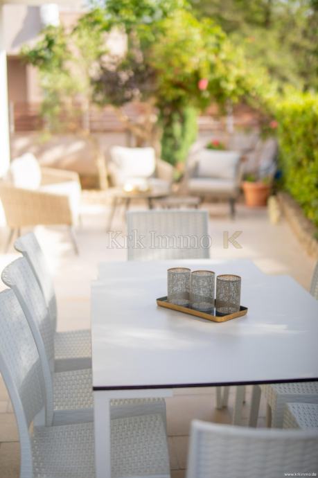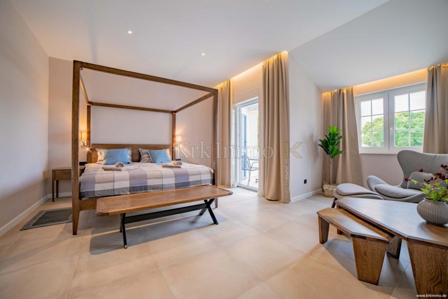 Villa je adaptirana 2019. godine i ima uređenu, ograđenu okućnicu od 500 m2. Okućnica sadrži grijani bazen sa slanom vodom, roštilj, ljetnu kuhinju i dva parkirna mjesta.