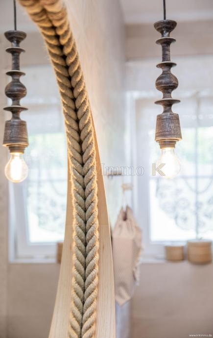 Prizemlje se sastoji od hodnika, kupaonice, dvije spavaće sobe i otvorenog dnevnog prostora s opremljenom kuhinjom, dnevnim boravkom i blagovaonicom. Iz dnevnog boravka se izlazi na natkrivenu terasu. Vanjske stepenice vode do kata, gdje se nalaze dvije spavaće sobe, svaka s vlastitom kupaonicom i odvojenim ulazima.