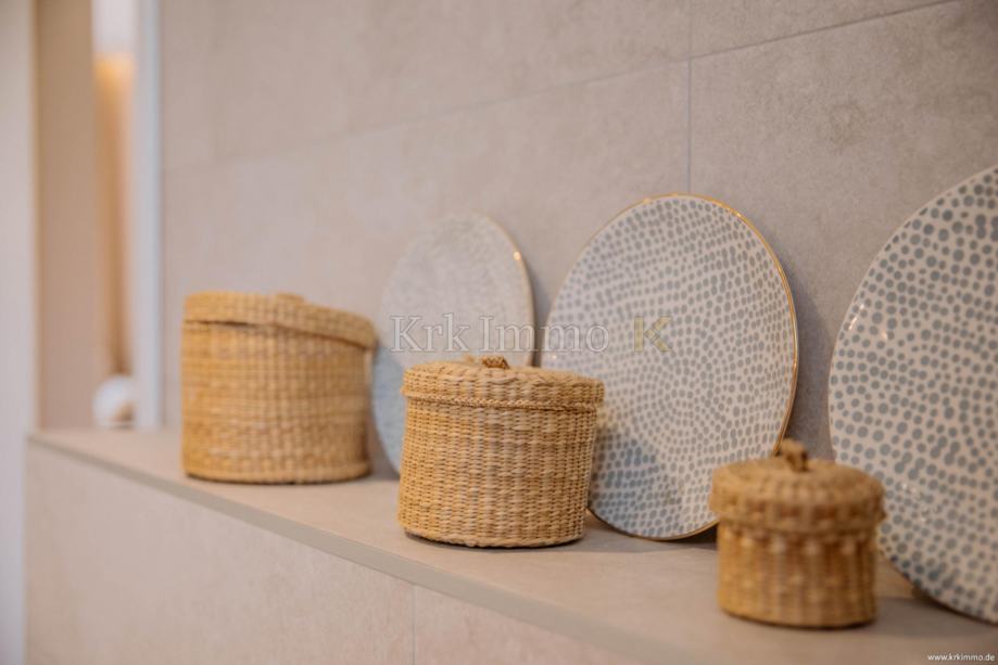 Nekretnina je opremljena klima uređajima, električnim norveškim radijatorima, visokokvalitetnom PVC stolarijom, kvalitetnim podnim oblogama, sanitarijama i keramikom. Prodaje se u potpunosti namještena i useljiva, pružajući savršen dom za udoban i luksuzan život na prekrasnoj lokaciji blizu mora u uvali Soline.