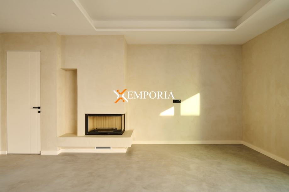 U vanjskom dijelu nalazi se bazen površine 40 m2 s keramičkom oblogom i pripremom za grijanje, tri parkirna mjesta (jedno u garaži i dva vanjska), kao i uređeni vrt. Na raspolaganju je i vanjski roštilj, što dodatno doprinosi uživanju na otvorenom.OpremaKuća je građena betonskim zidovima, ima stiropor fasadu debljine 10 cm, troslojnu aluminijsku stolariju s električnim roletama i protuprovalna ulazna vrata. Ugrađen je dimnjak s kaminom. Podovi su obloženi kombinacijom parketa i mikrocementa, a grijanje je riješeno putem električnog podnog grijanja u cijeloj kući. Uz to, instalirano je ukupno pet klima uređaja – jedan u dnevnom boravku i po jedan u svakoj spavaćoj sobi. Kuća posjeduje energetski certifikat A kategorije.