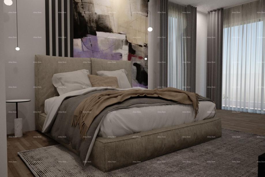 Moderna dizajnerska vila prodaje se potpuno namještena i opremljena vrhunskim uređajima, namještajem te svim ostalim pomno biranim detaljima koji ovu nekretninu čine posebnom i upečatljivom. Vila se nalazi u blizini grada Vodnjana.