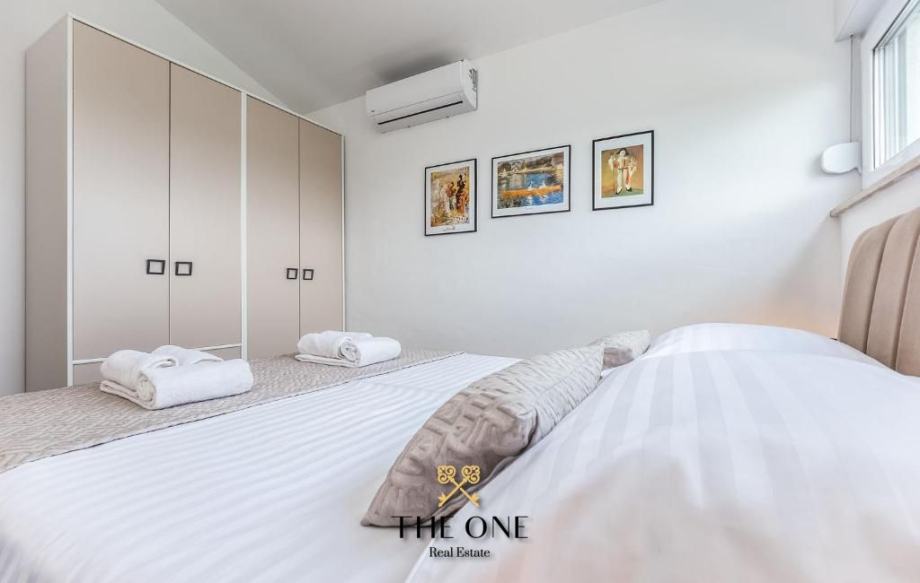 Elegantno stubište vodi na prvi kat gdje se nalaze dvije spavaće sobe također sa svojim kupaonicama i izlazom na terasu.