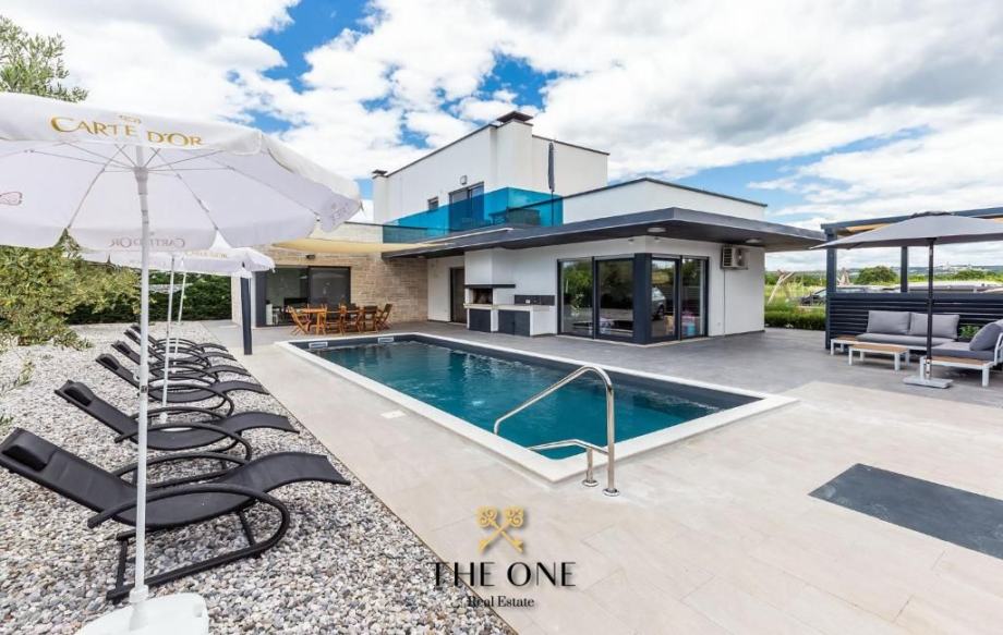 Moderna vila s bazenom u blizini Poreča, grada koji baštini dugu turističku tradiciju.