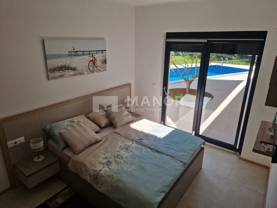 U eksterijeru dominira privatni bazen okružen uređenim vrtom, mediteranskim raslinjem i prostorom za sunčanje,