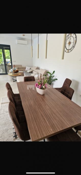 Ova novoizgrađena kuća odiše suvremenim dizajnom, prozračnošću i funkcionalnošću. Prostire se na jednoj etaži te