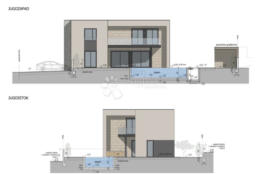 Svega desetak kilometara od centra grada i par minuta vožnje autom od prvih plaža, malo turističko mjesto, nadomak mora, smjestila se ova prekrasna samostojeća vila sa bazenom na parceli od 600m2 kao jedna od četiri vile u izgradnji.Vila sa bazenom u izgradnji ukupne korisne površine sa terasom i koeficijentom 180m2 koji se prostiru na dvije etaže.