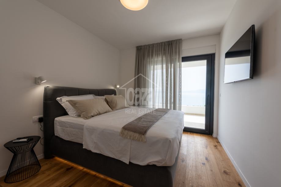 U prizemlju kuće je dnevni boravak sa kuhinjom i blagovaonicom, toalet, terasa sa bazenom, na prvom katu su tri spavaće sobe, dvije kupaonice, balkon i hodnik. Podno grijanje kroz cijelu vilu. Grijanje bazena, videonadzor, 4 klima uređaja.