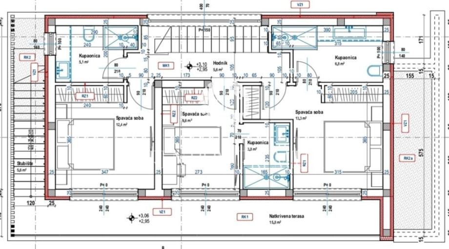 Unutarnjim stubištem penjemo se na kat gdje se nalaze 3 spavaće sobe sa vlastitim kupaonicama i zajedničkom terasom sa koje se pruža očaravajući pogled na more.