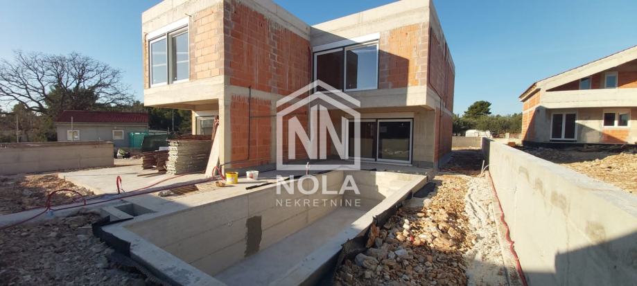 U Pirovcu, svega 700 metara od mora, nudimo na prodaju luksuznu, modernu vilu s bazenom, idealnu za ljubitelje udobnosti i luksuza. Ova predivna kuća sastoji se od prizemlja, kata i uređene okućnice s bazenom, savršena za opuštanje i uživanje.