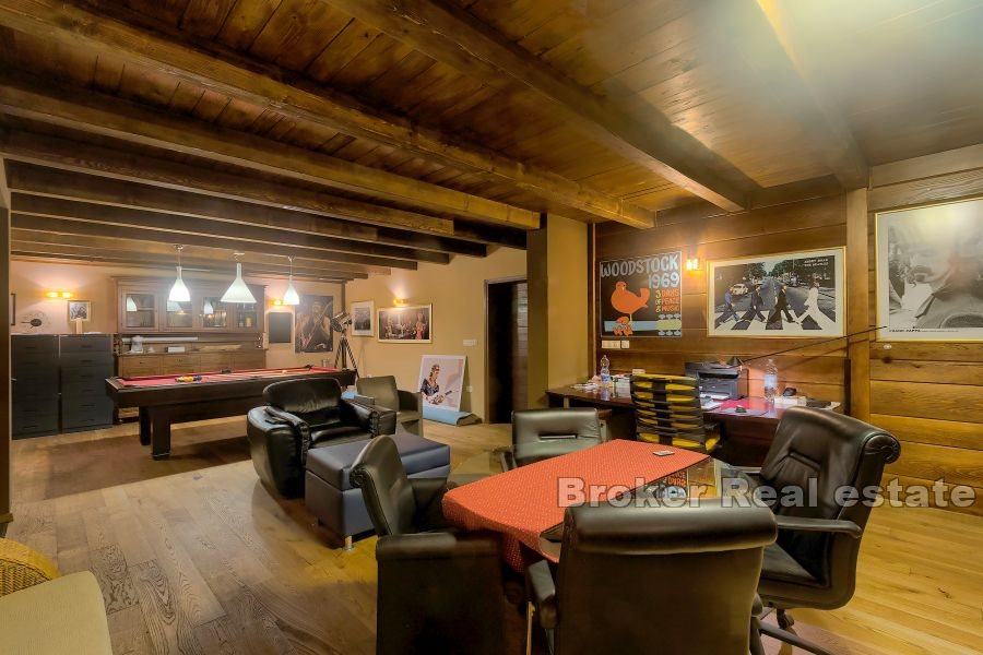 U podrumu vile, nalazi se prostor za druženje veličine 64m2 i spremište. U prizemlju nalazi se