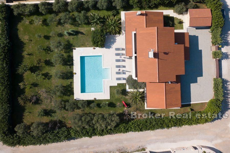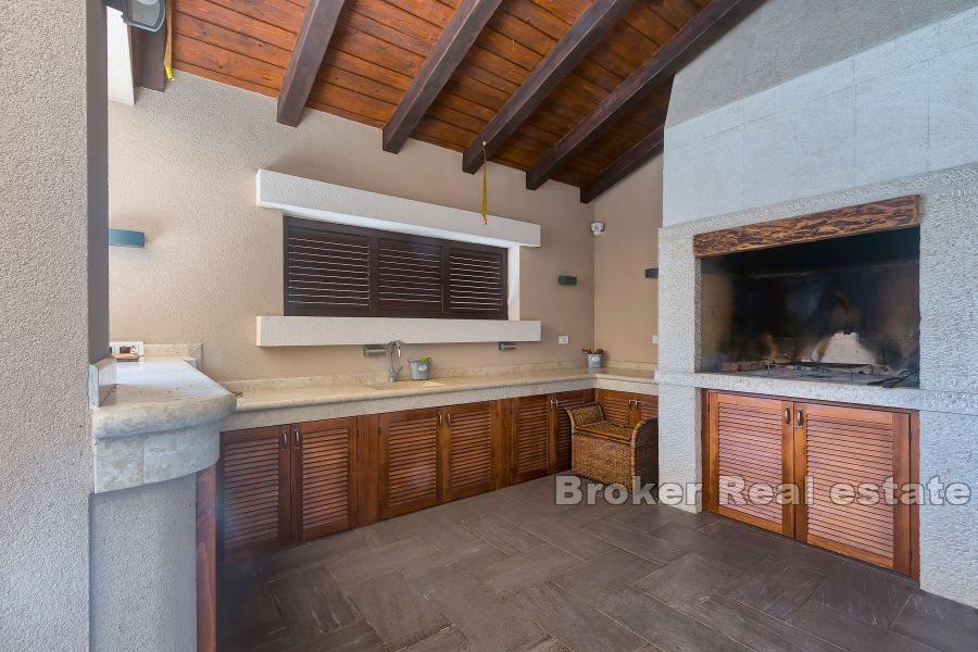 U dvorištu nalazi se bazen veličine 66m2, terasa s ljetnom kuhinjom i otvoreni vrt.