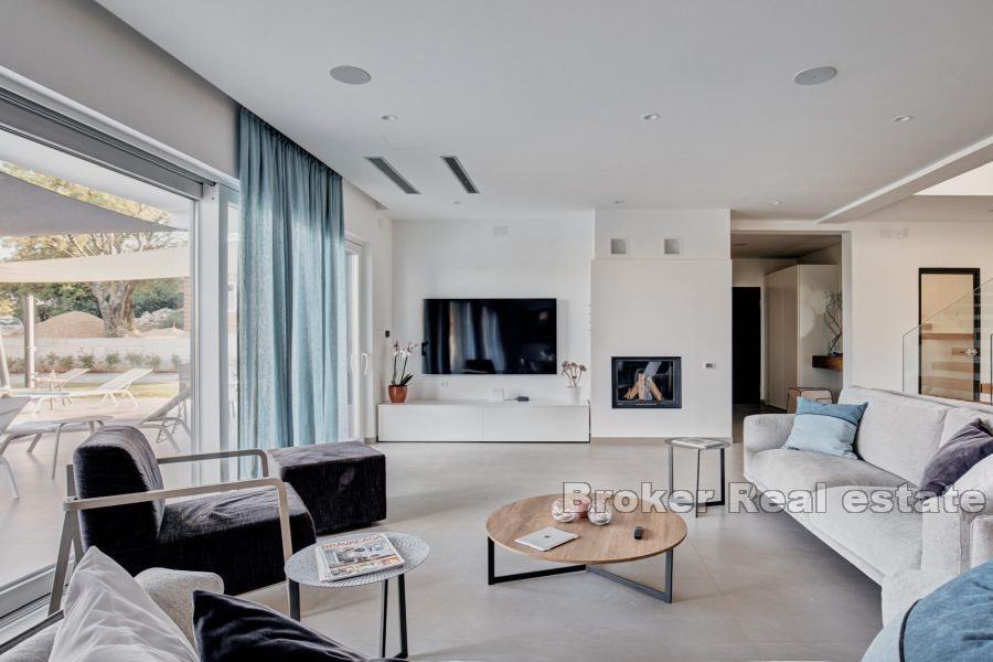 Vila je vrhunski opremljena, videonadzor i alarmni sustavi su vođeni preko mobilne aplikacije, automatsko navodnjavanje (Rainbird), dizalice topline ka i multi-room ozvučenje. Parking je osiguran za do četiri automobila.