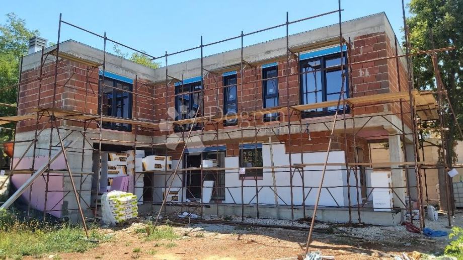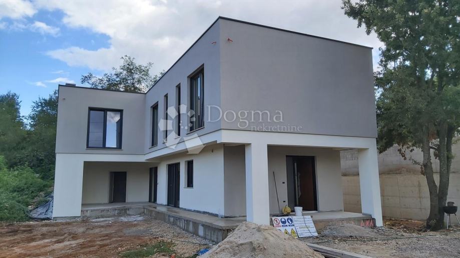 Na parceli od 1280 m² smjestila se ova prekrasna vila koja ima ukupnu stambenu površinu od 182 m². Vila moderne arhitekture biti će u skladu s okolnim prostorom. U prizemlju vile nalazi se kompletno opremljena kuhinja, blagovaonica, dnevni boravak koncipirani kao open space, toalet, spremište i natkrivana terasa. Staklena stijena u dnevnom boravku omogućuje mnoštvo svjetlosti tijekom cijelog dana, a s terase se i direktno pruža pogled i pristup bazenu veličine 13x4,5 m. s pripadajućom automatikom za održavanje bazena. Na katu se nalaze tri klimatizirane spavaće sobe s pripadajućim kupaonicama i utility soba. Vila je opremljena sustavom podnog grijanja, kompletno je klimatizirana, dostupna je WIFI mreža, satelitska televizija u svim sobama te potpuno povezana smart home sustavom. U dvorištu kuće dostupno je više parkirnih mjesta.
