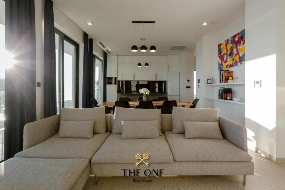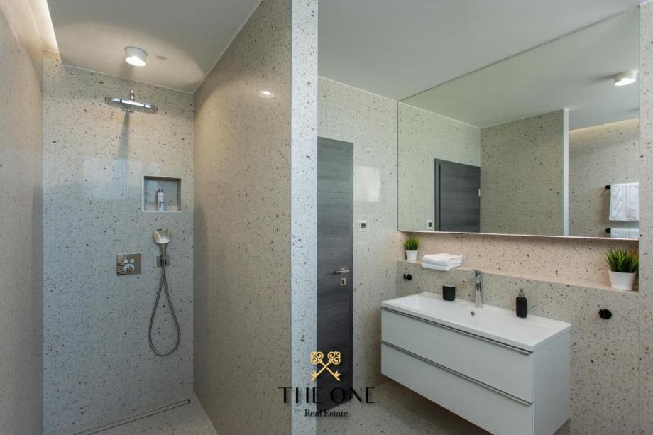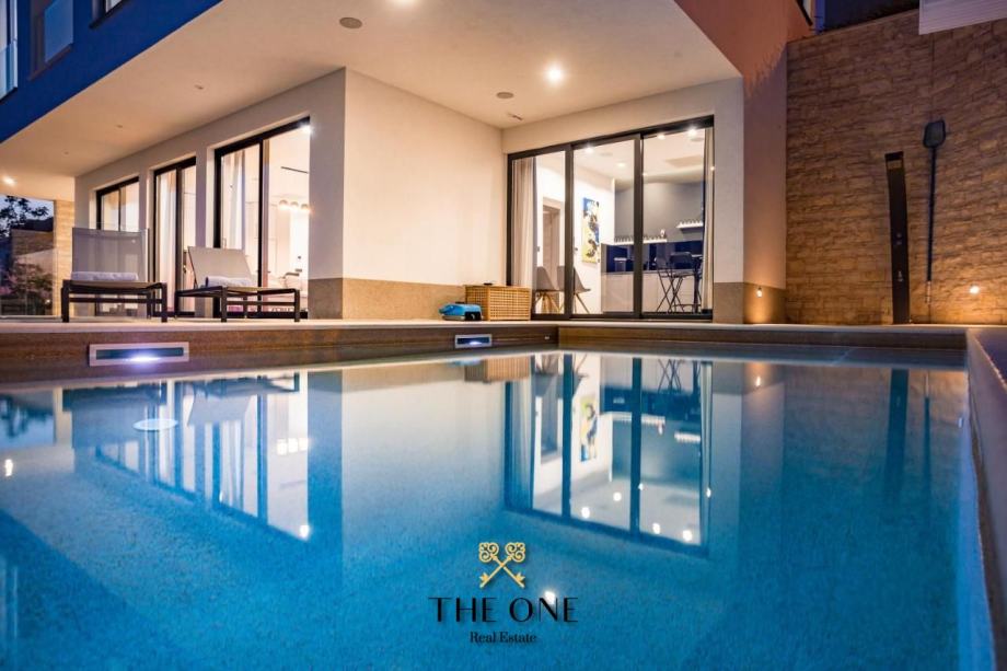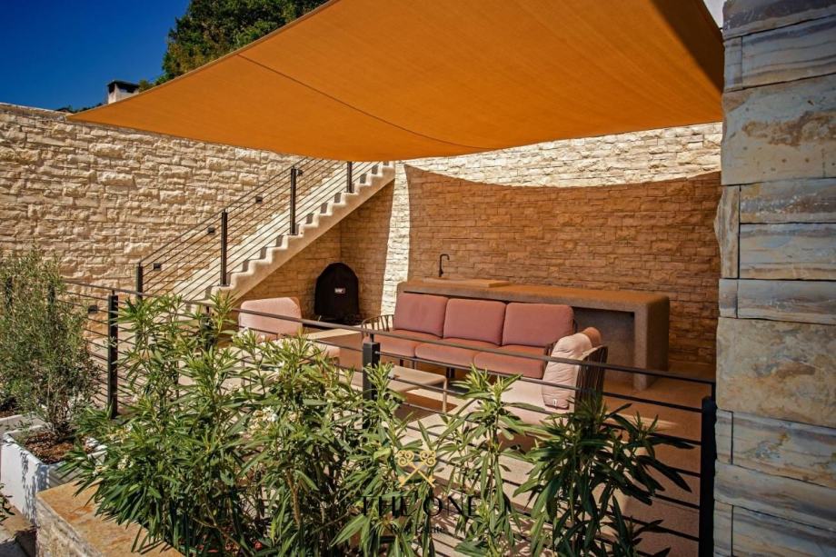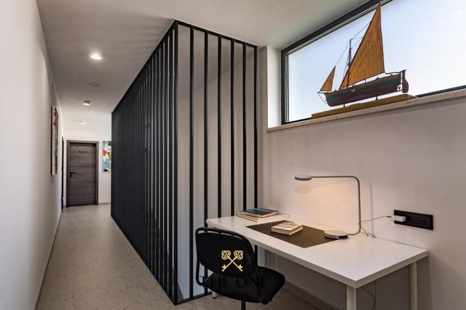 Vila se prostire na dva kata, a u prizemlju vas očekuje prostrani otvoreni koncept s kuhinjom, blagovaonicom i dnevnim boravkom koji izlazi na terasu s pogledom na beskrajno plavo more. Na terasi možete uživati u vanjskoj kuhinji, blagovaonskom stolu i lounge zonama, savršenim za druženje s obitelji i prijateljima.