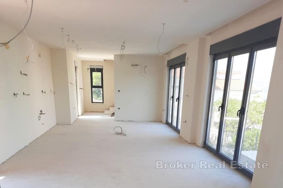 Prizemlje površine 93m2 se sastoji od otvorenog koncepta kuhinje s blagovaonicom i dnevnog boravka te toaleta. Unutarnje stubište vodi do prvog kata površine 95m2 na kojem se nalaze tri spavaće sobe sa vlastitim kupaonicama.