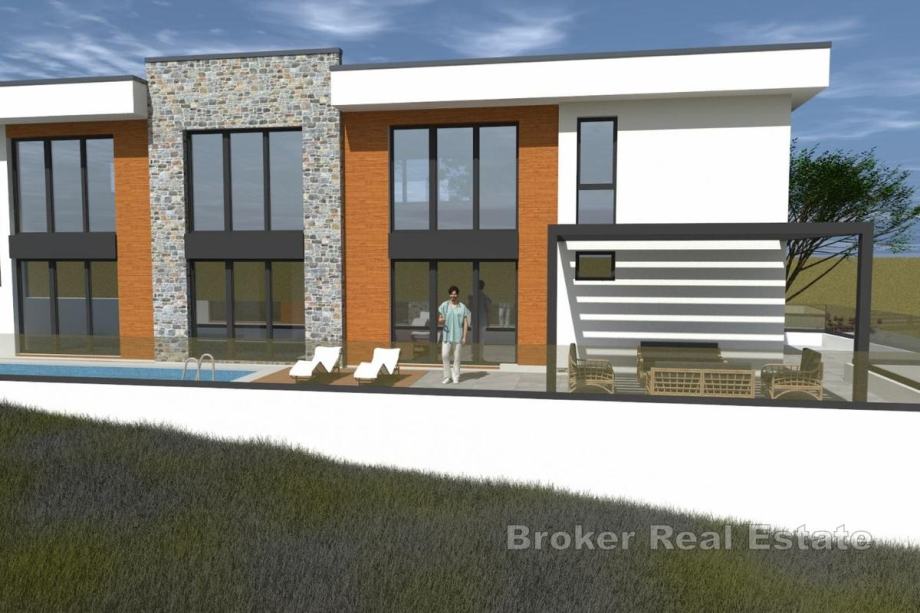 Moderna vila s bazenom i pogledom na more smještena na atraktivnoj lokaciji na Čiovu, na 270m udaljenosti od mora.