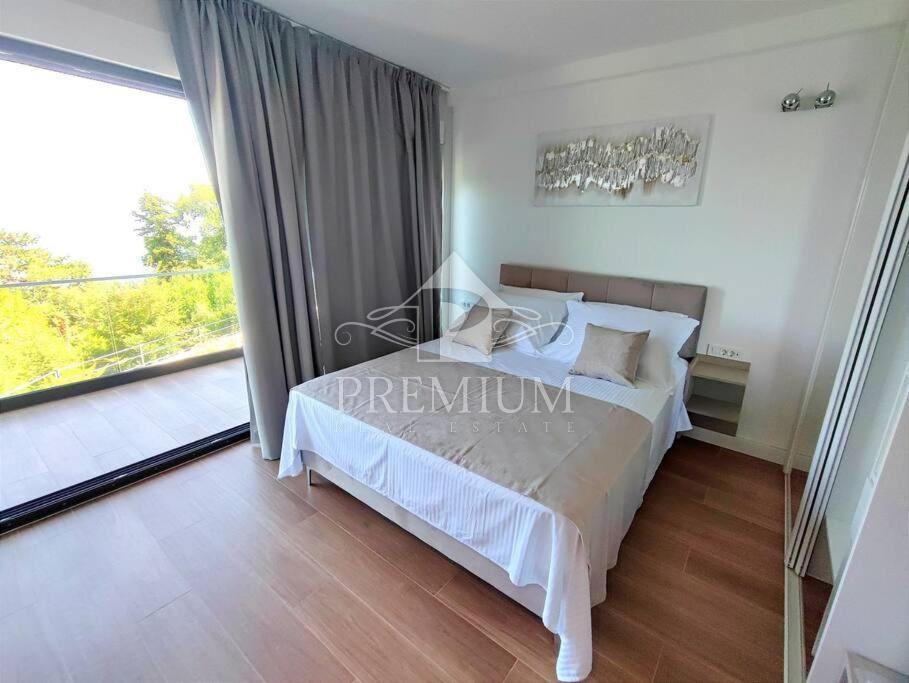 Vila sa bazenom i garažom i prekrasnim pogledom na more nalazi se na samo 3 minute vožnje od centra Lovrana.