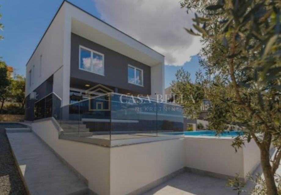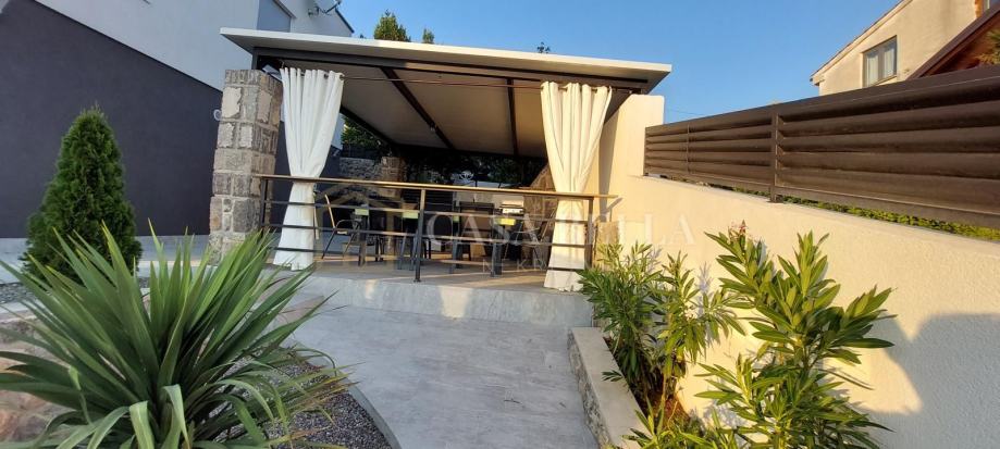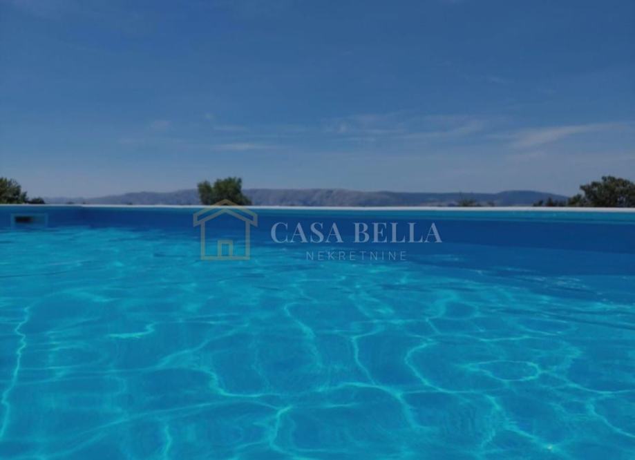 Unutar lijepo uređene i ograđene okućnice nalazi se prostrana vila s bazenom, sunčalištem, natkrivenom terasom te dodatnim prostorom za druženje uz sjenicu i roštilj.