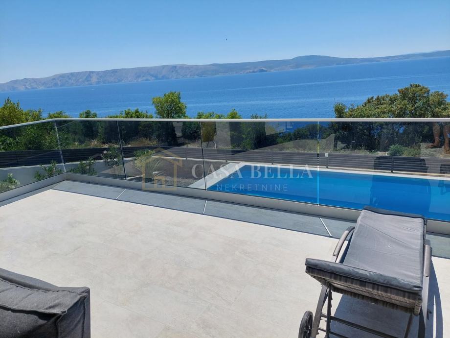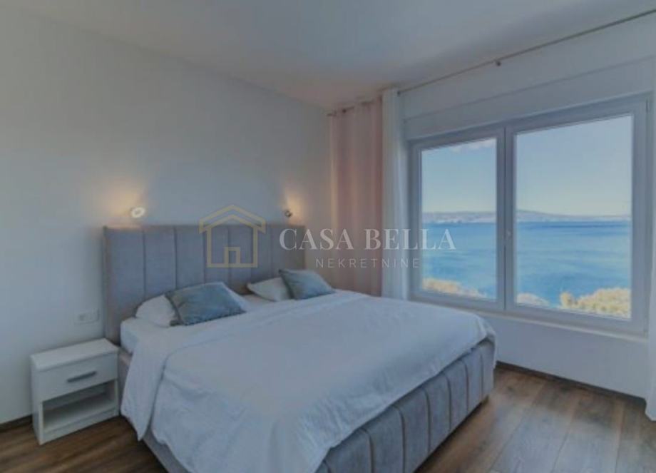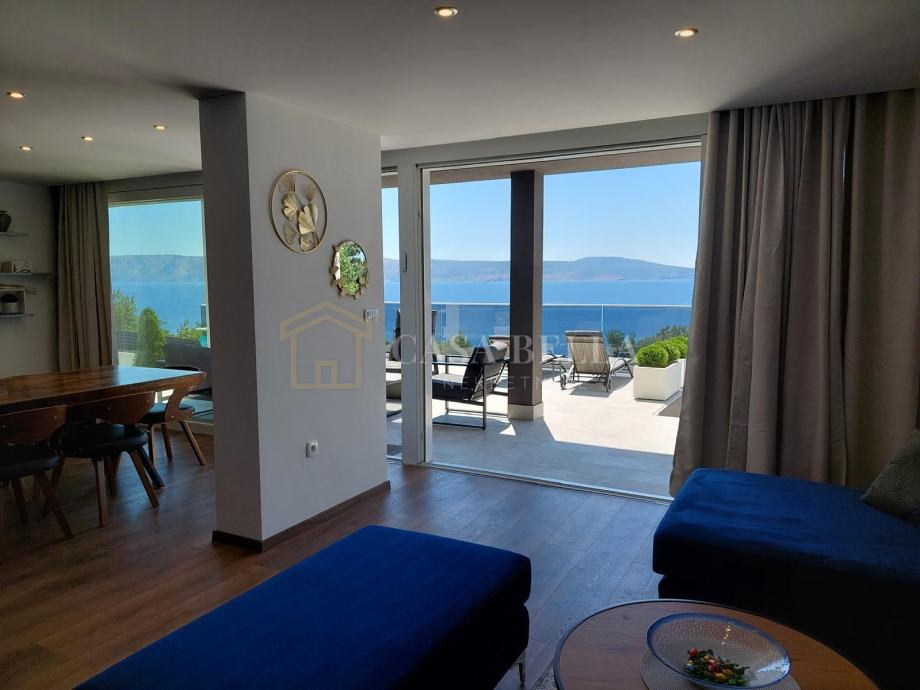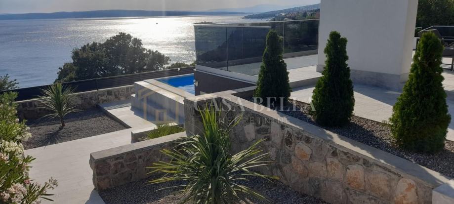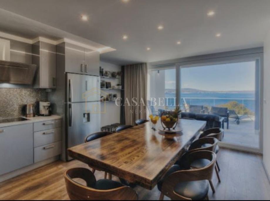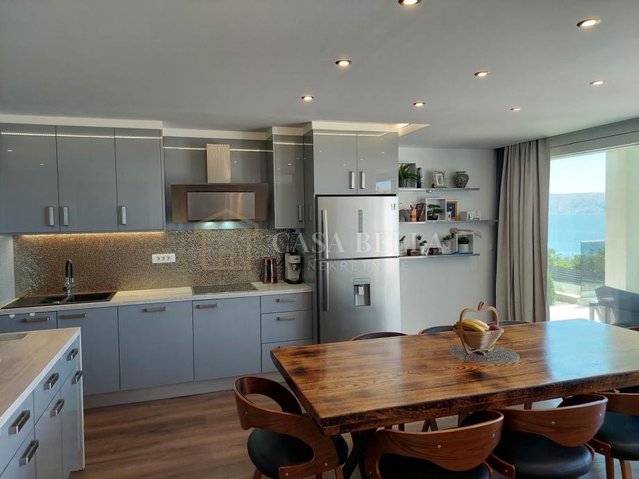 U srcu Novog Vinodolskog, smještena u mirnom okruženju obiteljskih kuća, ova moderna katnica pruža sve što biste poželjeli za luksuzno življenje ili odmor iz snova. S pozicijom u prvom redu do mora, na samo 70 metara iznad plaže, kuća nudi spektakularan panoramski pogled na kristalno plavo more i nezaboravne zalaske sunca.