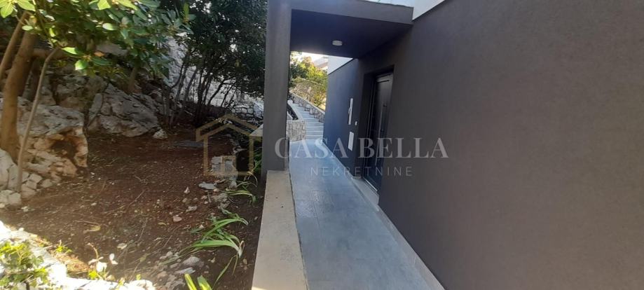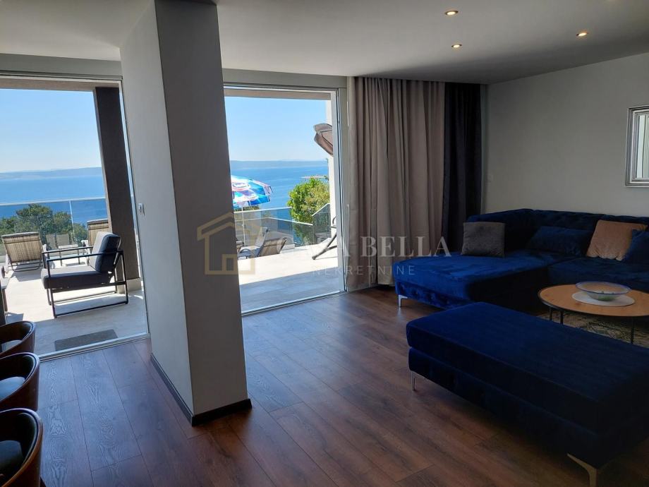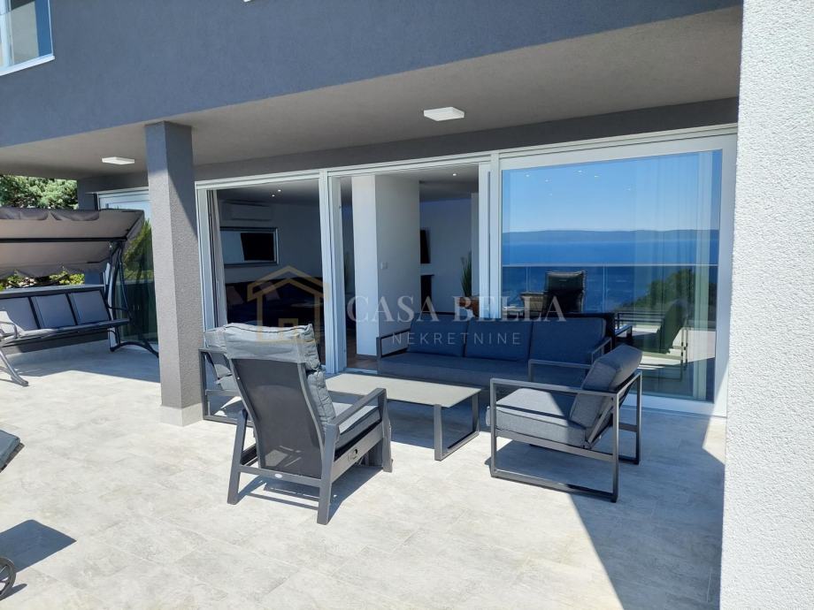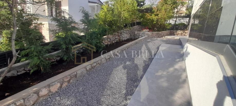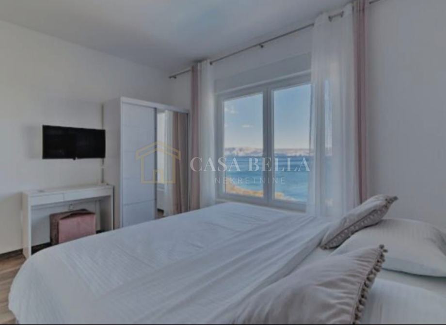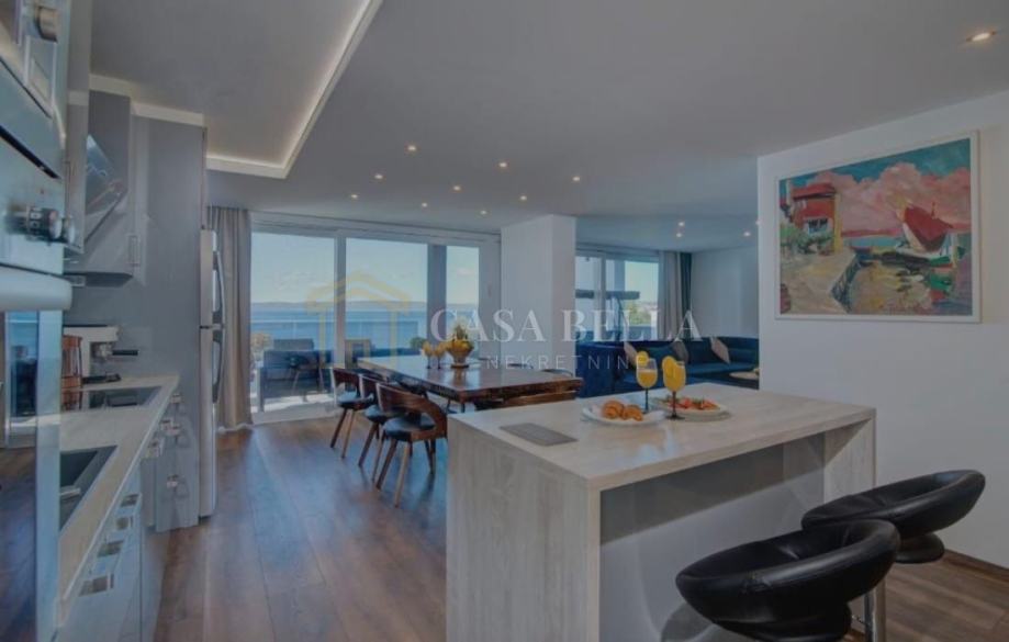 U srcu Novog Vinodolskog, smještena u mirnom okruženju obiteljskih kuća, ova moderna katnica pruža sve što biste poželjeli za luksuzno življenje ili odmor iz snova. S pozicijom u prvom redu do mora, na samo 70 metara iznad plaže, kuća nudi spektakularan panoramski pogled na kristalno plavo more i nezaboravne zalaske sunca.
