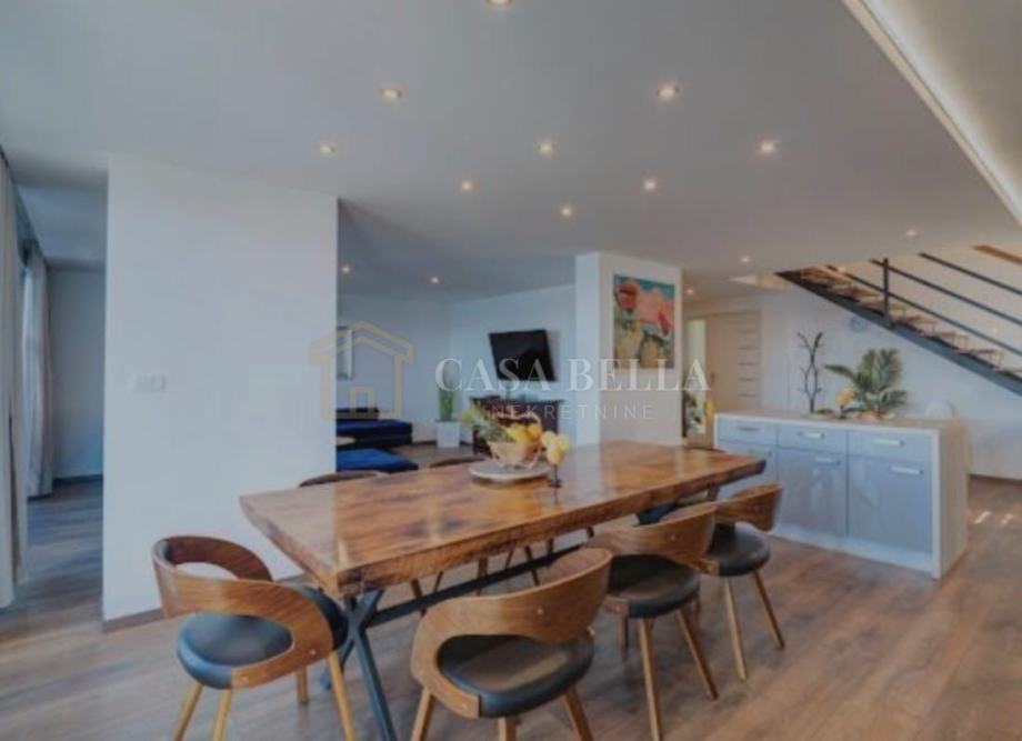 Kuća je potpuno opremljena modernim namještajem i visokokvalitetnim uređajima te se prodaje u potpunosti namještena.