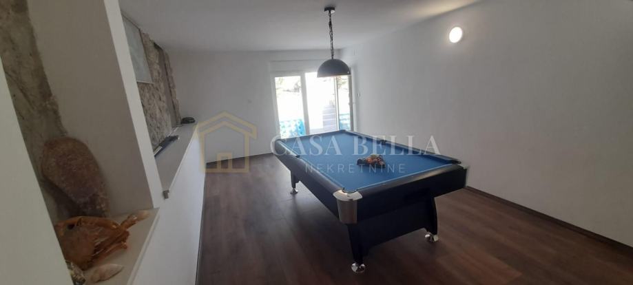 • Suteren: Nudi konobu sa stolom za bilijar, idealnu za razonodu, te dodatne prostorije za odlaganje ležaljki, opreme za bazen i slično.