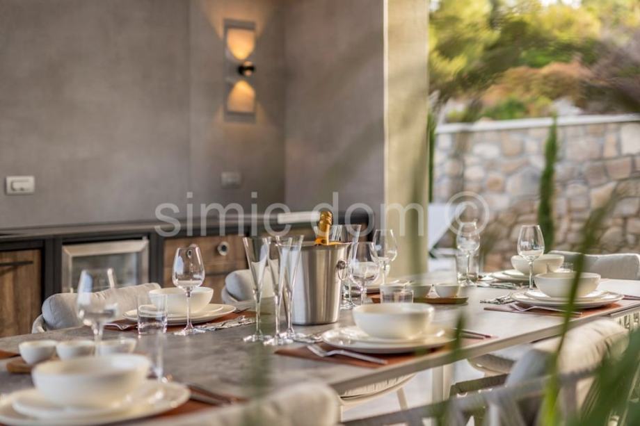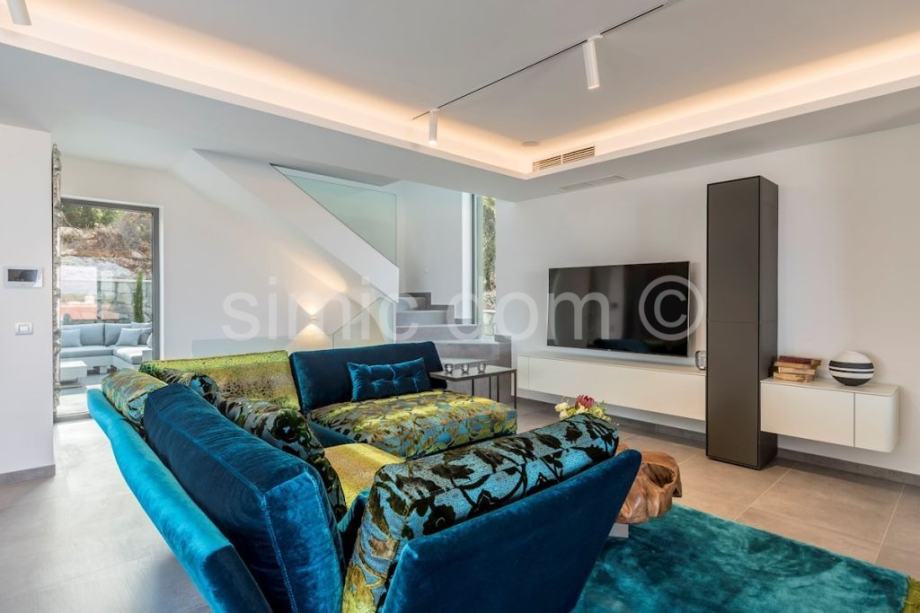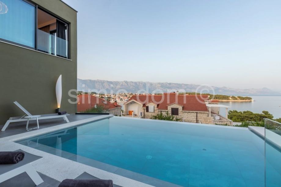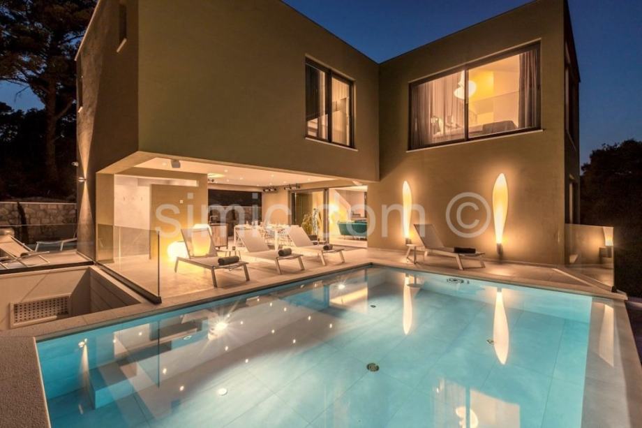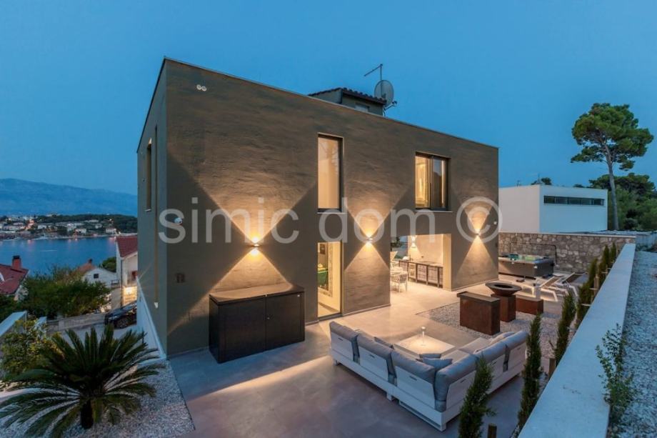 Posredujemo u prodaji moderne vile u šarmantnoj uvali Puntinak, u općini Selca na otoku Braču. Nekretnina se nalazi na odličnoj lokaciji tek nekoliko minuta šetnje od plaže i centra mjesta. Sama vila je izgrađena od bračkog kamena, ima ukupnu korisnu površinu 364 m2 te je smještena na parceli od 560 m2. Ima dvije etaže: prizemlje i prvi kat. Sveukupno broji četiri spavaće sobe, pet kupaonica te jedan gostinjski toalet. Uz unutarnju kuhinju s dnevnim boravkom koja se nalazi u prizemlju i iz kojih se pristupa terasi, ima i ljetnu kuhinju, prostor za roštilj, jacuzzi te infinity bazen sa sunčalištem i prostorom za odmor i relaksaciju. Vila ima i wellness dio koji se sastoji od teretane i saune, a do same vile nalazi se i garaža. Riječ je o izvrsnoj nekretnini čija kvaliteta opremljenosti, moderni dizajn, vrlo lijep pogled na more i odlična lokacija jamče isplatljivost i iskoristivost investicije.
