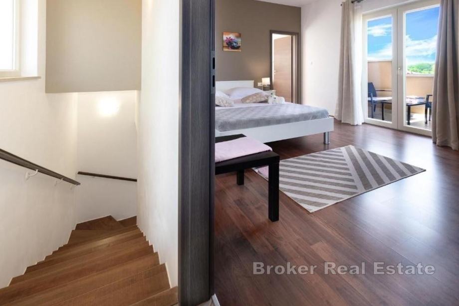 U mirnom dijelu središnje Istre, oko 25 km od mora i približno 1000 metara od osnovnih sadržaja, nalazi se moderna vila ukupne stambene površine 230 m². Smještena je u okruženju prirode i pruža mir i privatnost, uz dobru povezanost s obližnjim mjestima i obalom.