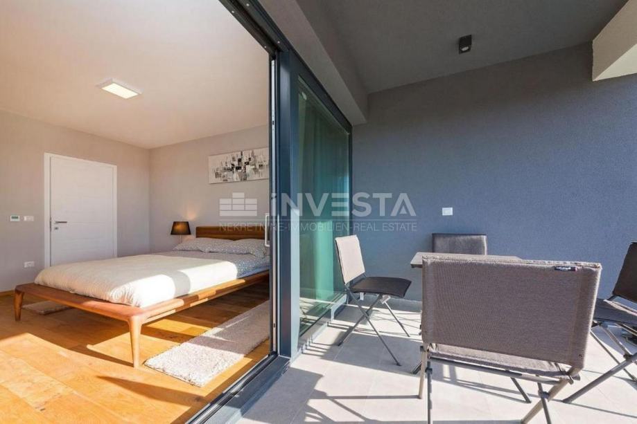 Na samo 500 metara od kristalno čistog mora i 1,4 km od centra Poreča, prodaje se moderna vila vrhunske kvalitete koja spaja luksuz, eleganciju i maksimalnu udobnost.