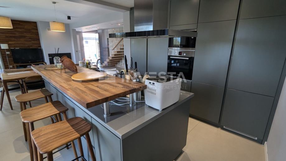 Smještena na parceli od 393 m², vila se prostire na 250 m² stambene površine raspoređene na tri etaže.