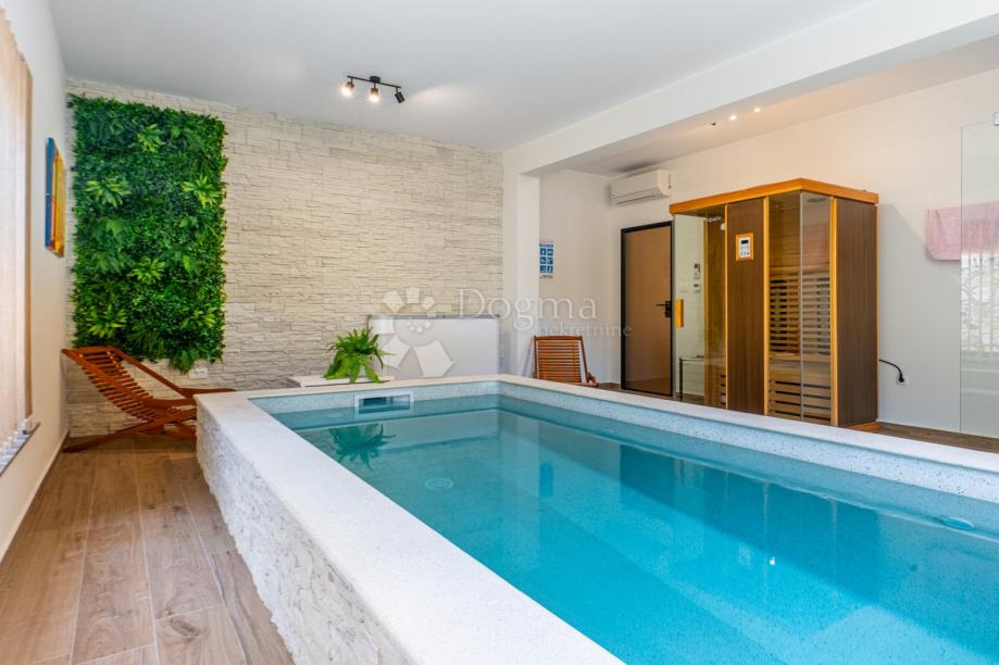 Vila je opremljena modernim sadržajima, podnim grijanjem klimatizacijom, alarmnim sustavom i brzim internetom. Savršena za cjelogodišnji boravak, poslovne ljude ili obitelj koja traži luksuznu rezidenciju blizu mora.