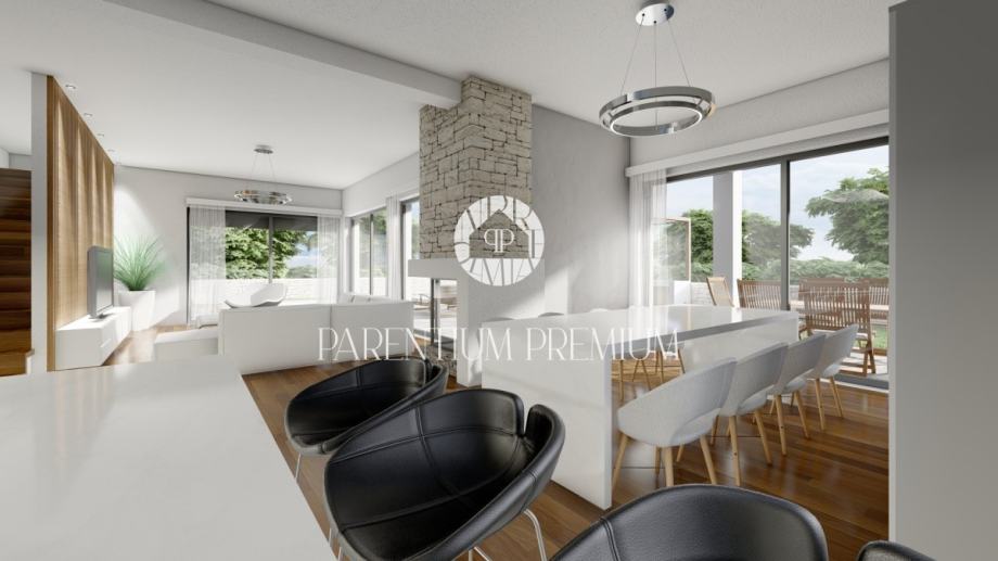 Vila se sastoji od 2 etaže u kojima će se nalaziti iznimno osvijetljeni prostrani dnevni boravak sa kuhinjom i blagovaonom, u kojemu će se još nalaziti kamin za idiličan zimski ugođaj. 4 spavaće sobe sa vlastitim kupaonama i pripadajućim terasama gdje će budući vlasnici uživati uz zalaske sunca i prekrasni pogled na more. 1 gostinjski toalet i 2 ostave upotpunjuju sadržaj ove iznimne vile.
