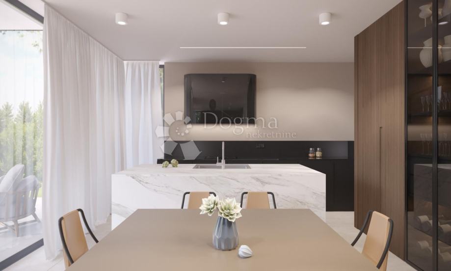 Jedan od vrhunaca ove vile je besprijekorna povezanost između unutarnjeg i vanjskog života. Velike klizne staklene stijene ne samo da poplavljuju interijer prirodnim svjetlom, već omogućuju i izravan pristup vanjskoj terasi. Zakoračite vani i otkrijte pravu oazu mira. Natkrivena terasa, s pogledom na zeleno okruženje, poziva vas da se sunčate ili opustite u hladu. I ne samo to, vanjska kuhinja opremljena najnovijom tehnologijom i udobnim prostorom za sjedenje stvaraju savršenu atmosferu za uživanje u kulinarskim trenucima s obitelji i prijateljima.