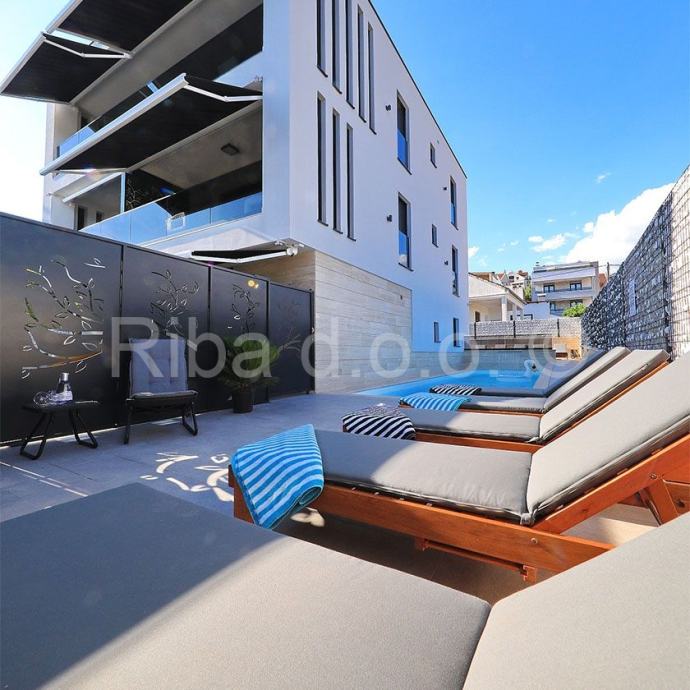 Drugi kat: elegantan dvosoban stan s velikom natkrivenom terasom i privatnim jacuzzijem.