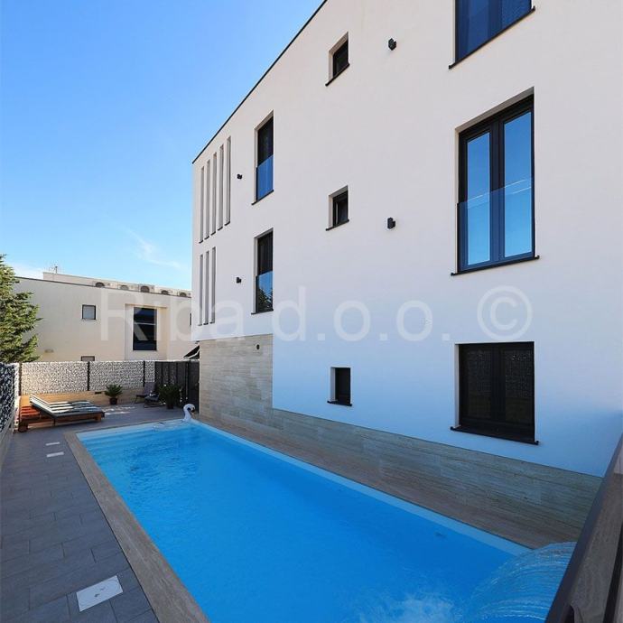 Prodaje se moderna vila u Maslenici, s četiri potpuno opremljene stambene jedinice, smještena svega 30 metara od plaže. Ova ekskluzivna nekretnina nudi predivne poglede na more.