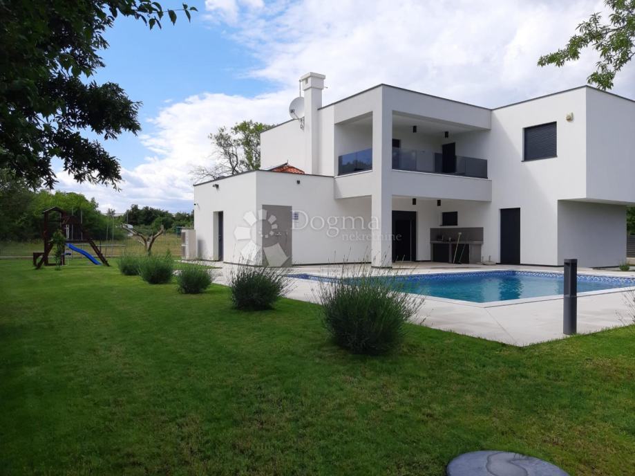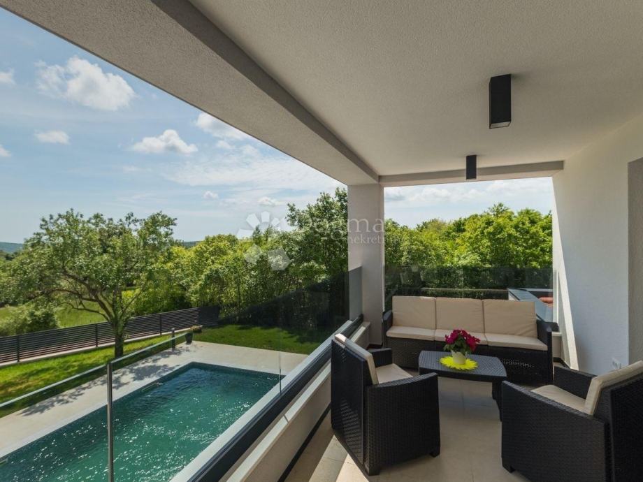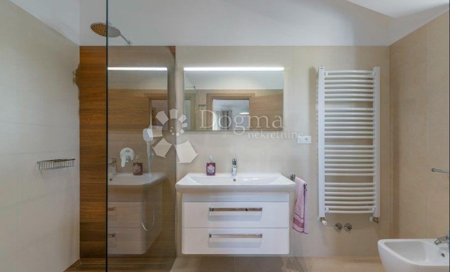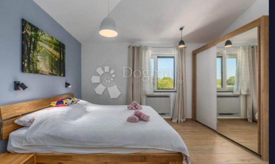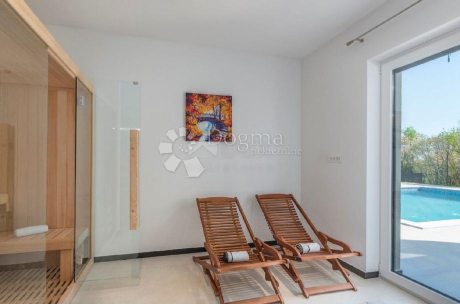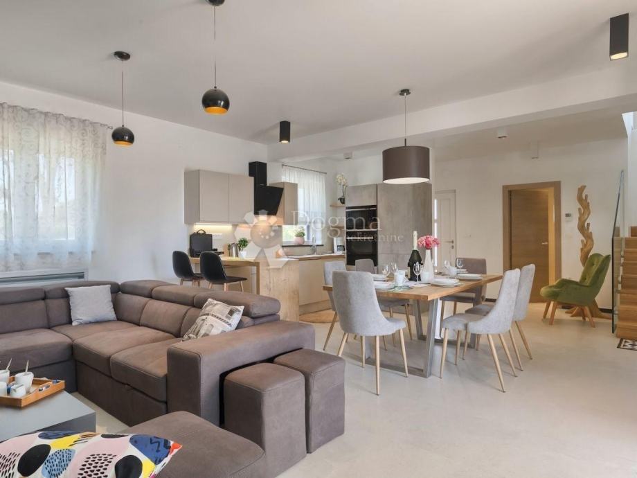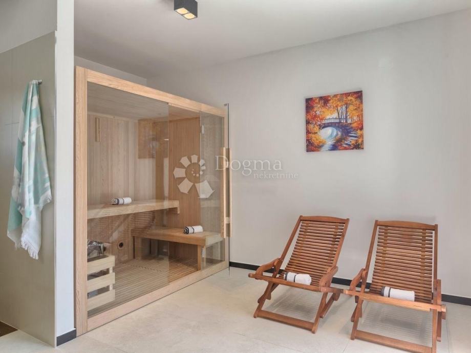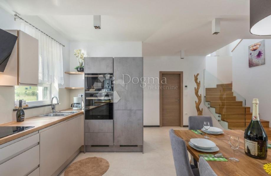 Atraktivna villa je opremljena suvremenim uređajima i dizajnerskim namještajem, u potpunosti je klimatizirana I ima podno grijanje