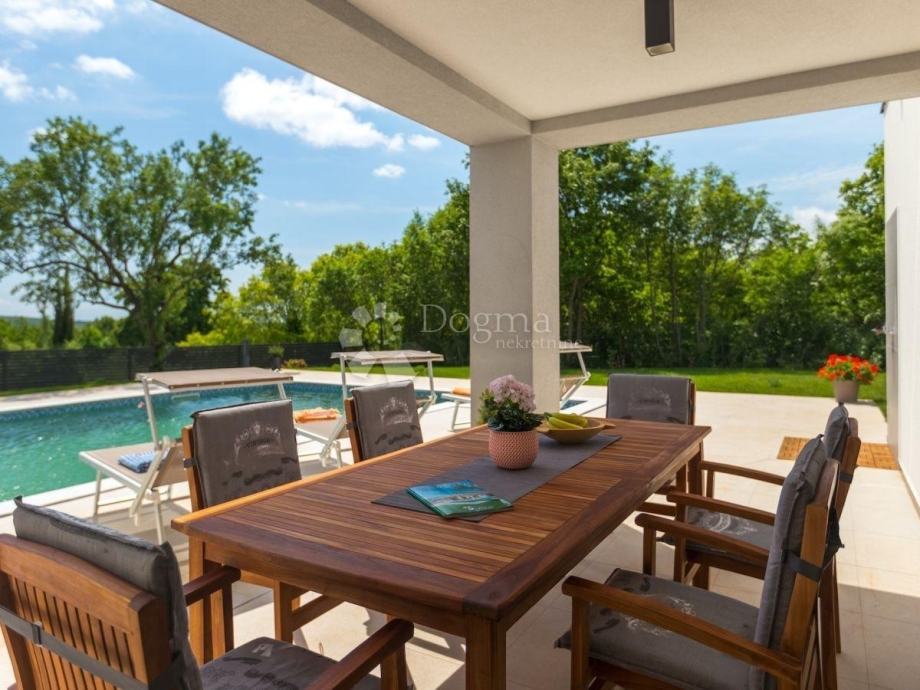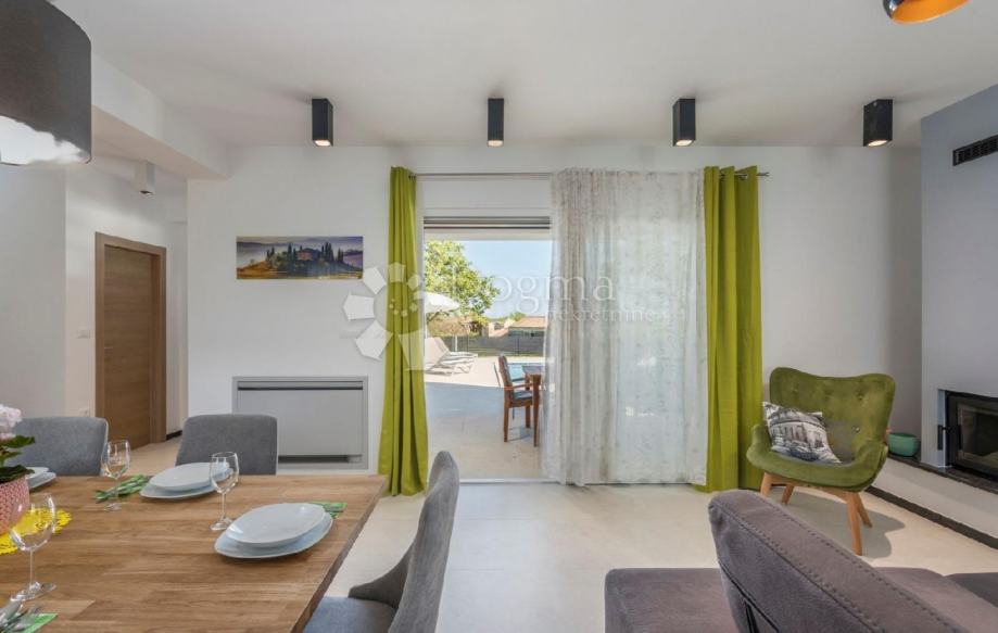 Atraktivna villa je opremljena suvremenim uređajima i dizajnerskim namještajem, u potpunosti je klimatizirana I ima podno grijanje