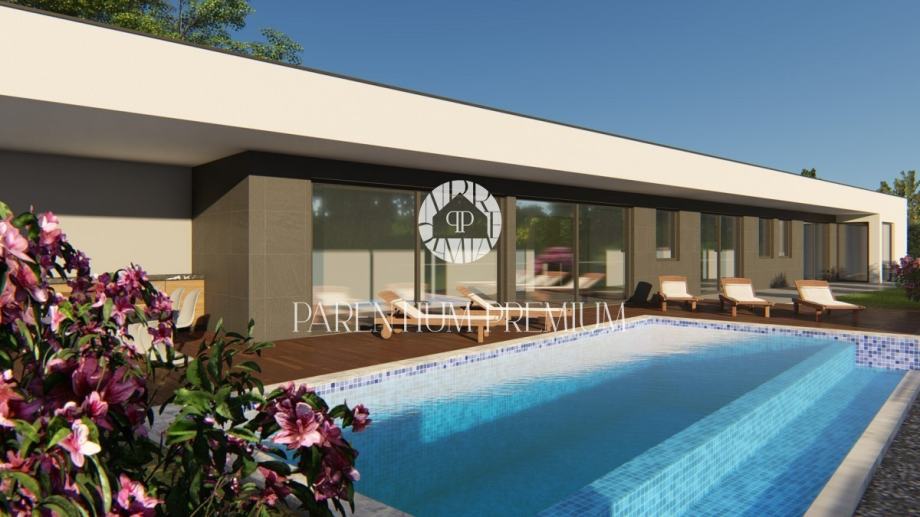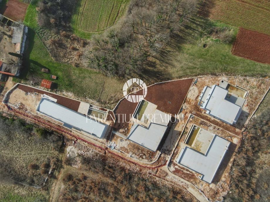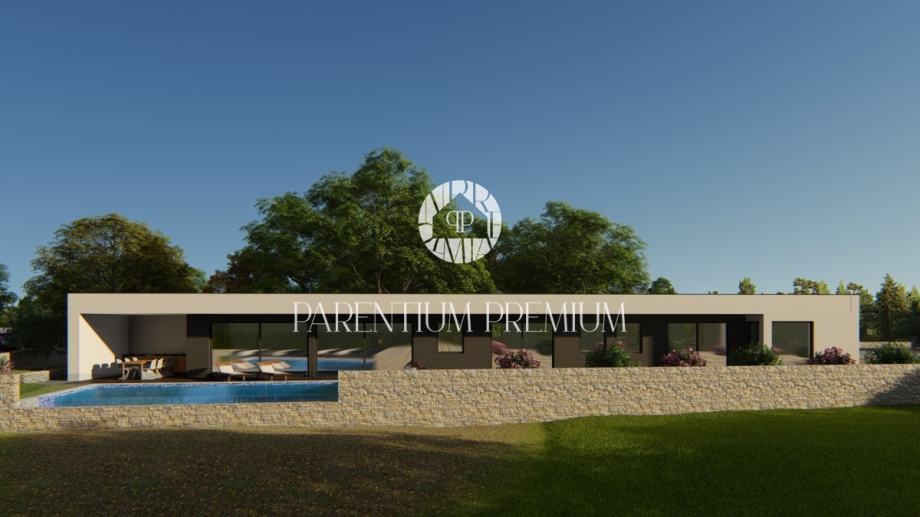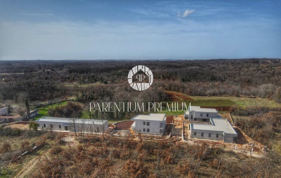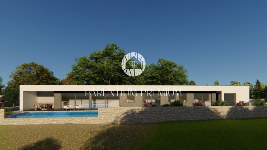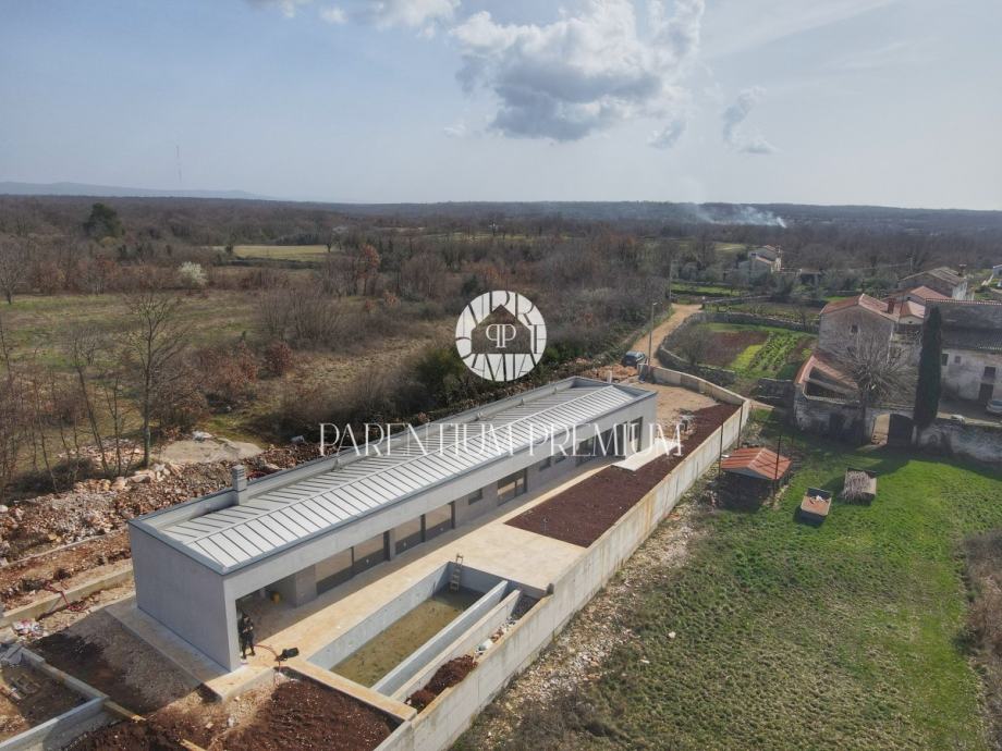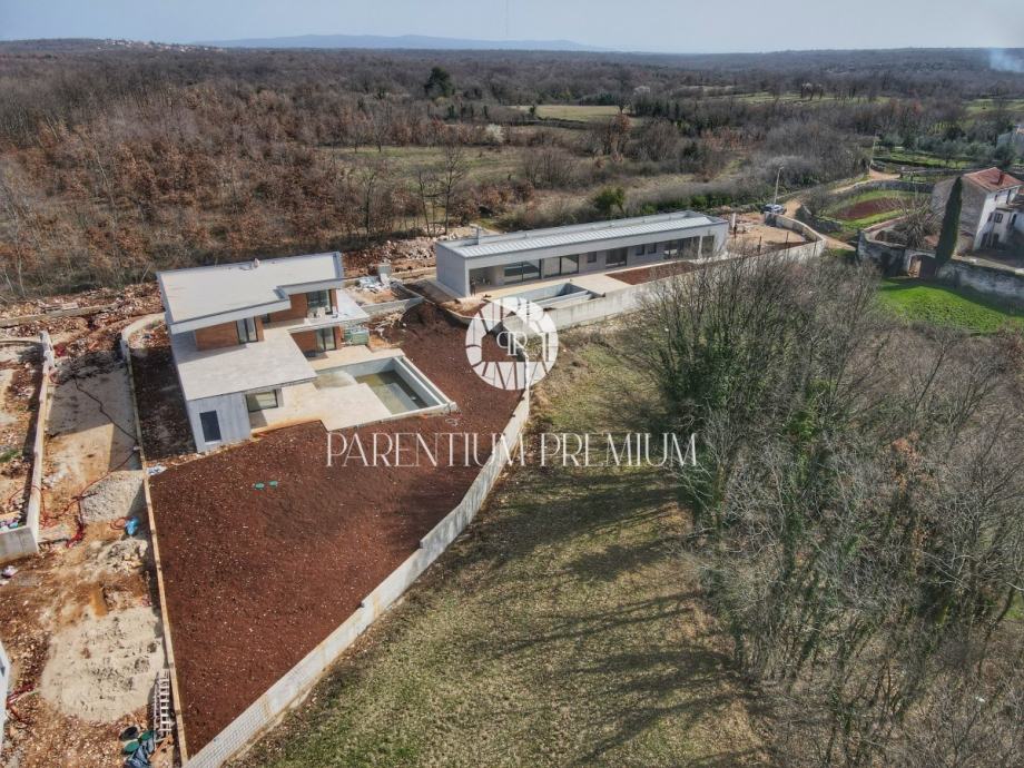 Vila ima moderni karakter sa ravnim krovom i velikim otvorima koji prostor oplemenjuju sa pregršt dnevnog svjetla i spajaju ga sa prekrasnim okruženjem i prirodom središnje Istre.