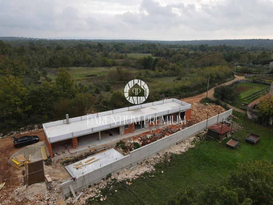 U malom Istarskom naselju pored srednjevjekovnog gradića Svetvinčenta, na lijepoj izdignutoj poziciji, na rubu šume gradi se ova posebna vila sa bazenom.