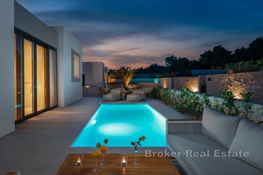Moderna vila smjestila se drugi red od mora i se nalazi unutar modernog resorta na otoku. Okružena drugim vilama, netaknutom prirodom, te čistim morem stvara osjećaj mira, privatnosti i luksuza.
