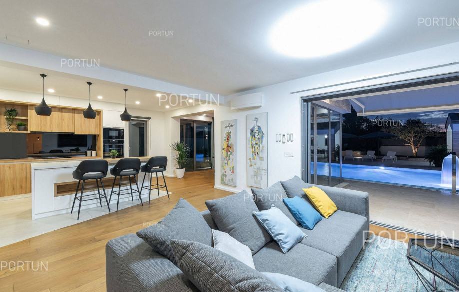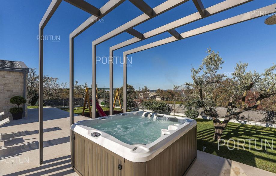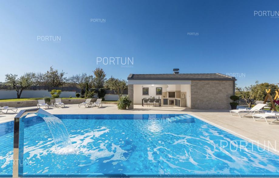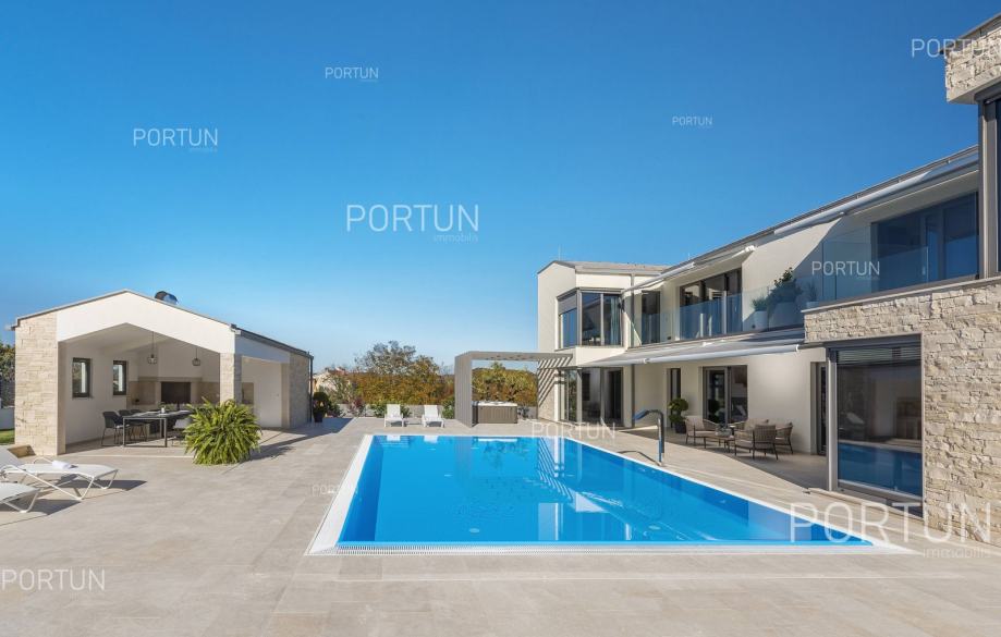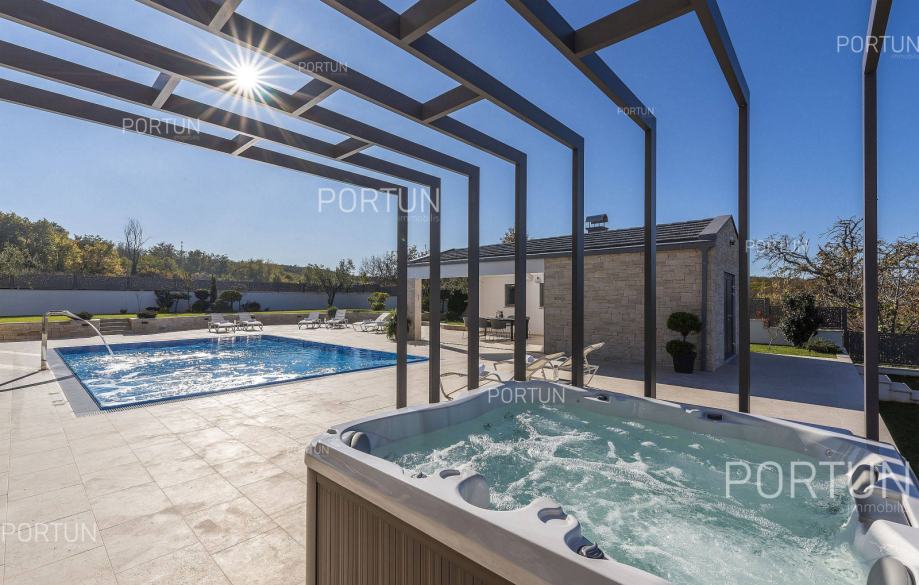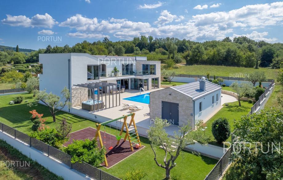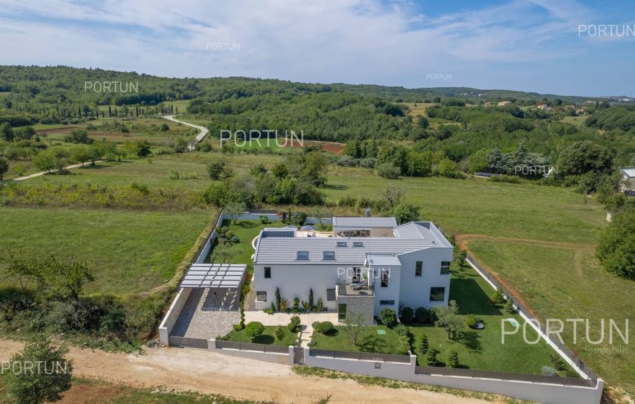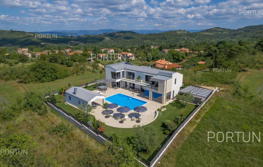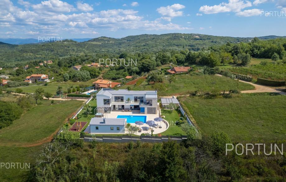 Smještena u mirnom okruženju nedaleko Motovuna, ova prostrana vila s velikim staklenim otvorima i fantastičnim pogledom na brežuljkasto srce Istre proteže se na gotovo 450 četvornih metara. Eksterijer od oko 1500 četvornih metara obogaćen je s oko 120 mediteranskih biljaka, od kojih su ovdje svoje mjesto pronašle masline, lavanda, borovi, čempresi, lovori, javori i smreke. Moderno dizajnirana vila sastoji se od prostranog dnevnog boravka s blagovaonicom i kuhinjom s otokom, 5 spavaćih soba s vlastitim kupaonicama, praonice rublja i ostave. Tu su bazen, jacuzzi, sauna i ljetna kuhinja u dva reda sa kaminom koji ovu nekretninu čine jedinstvenom!. Ako tražite savršenu ravnotežu između modernog života i prirodnog okruženja onda bi ovo moglo biti pravo mjesto za vas!. KLJUČNE OSOBINE✔ 5 Spavaćih soba │ 5 Kupaonica │ 1 WC │ 10 Ležajeva✔ Preljevni bazen 60,00 m2✔ Hidromasažna kada Jacuzzi✔ Zemljište 1.502 m2✔ Motovun │ 5 km✔ Izgrađeno 2021/8. g.SAZNAJTE VIŠEViše informacija o oglasu broj 20734 saznajte na https://portun.comDirektan link na oglas: https://portun.com/hr/20734/Za sva dodatna pitanja na raspolaganju je agent posredovanja Alesandro Laginja +385919386003
