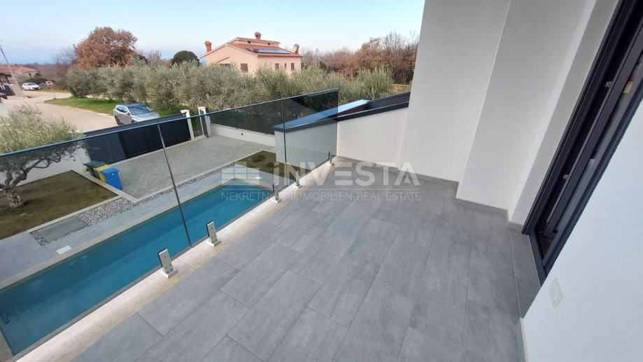 U manjem naselju nedaleko Poreča, udaljenom samo 6 km od centra grada, smjestila se ova izvanredna moderna vila ukupne površine 139,30 m² na parceli od 521 m². Vila se proteže na dvije etaže, prizemlje i kat s kojeg se pruža predivan pogled na more.