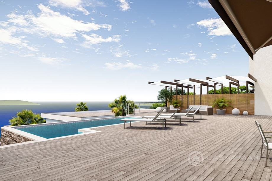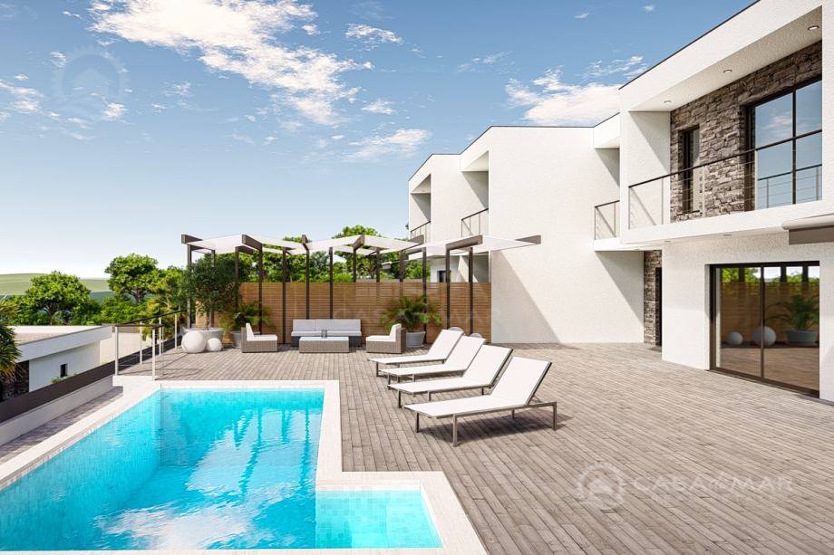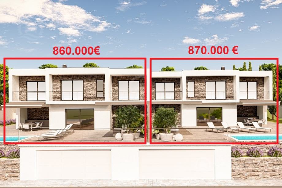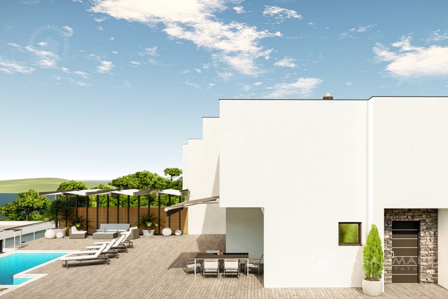 Moderna dvojna vila površine 228 m2 i prostranom okućnicom sa predivnim panoramskim pogledom na more.